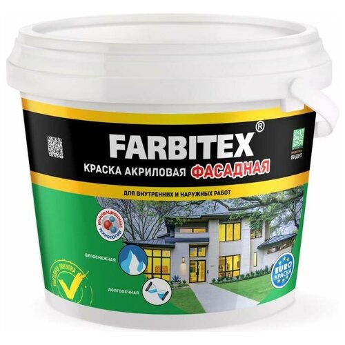 Краска акриловая (АК) Farbitex фасадная матовая 1.1 кг