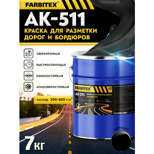 Краска Farbitex АК-511, черная, для разметки дорог, бордюров, 7 кг