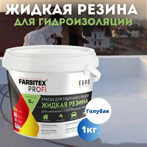 Краска акриловая для гидроизоляции жидкая резина голубая FARBITEX PROFI 1кг