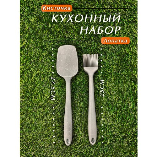 Кухонный набор лопатка, кисточка Серая
