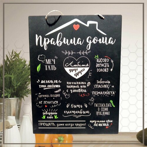 Панно деревянное "Правила дома".