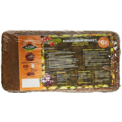 Торф кокосовый Fibre Family в брикетах, 7 л, 0.6 кг
