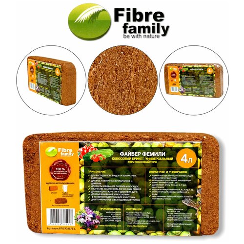 Торф кокосовый Fibre Family в брикетах, 8 л, 0.6 кг