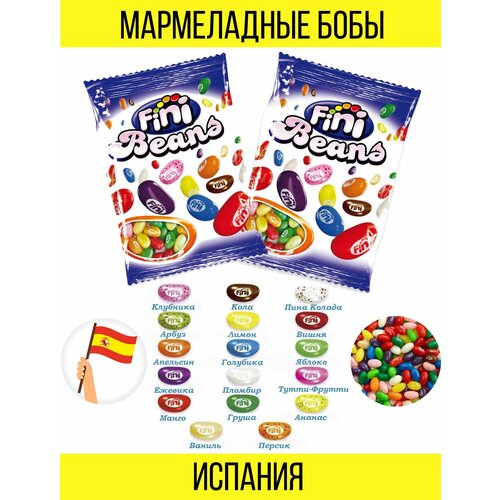 Жевательные мармеладные бобы Fini Beans 90 г / Желейные бобы с разными вкусами 2 штуки