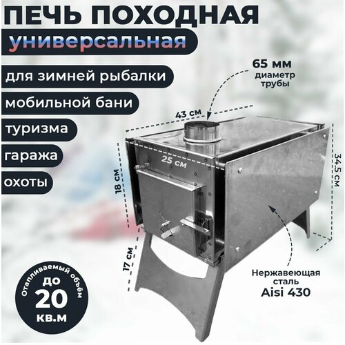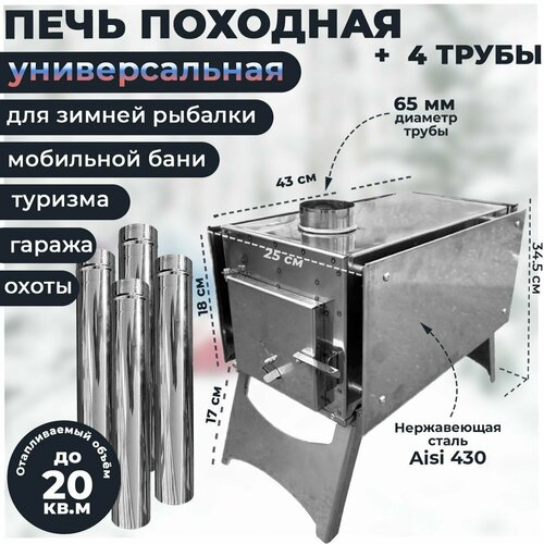 Печь отопительная походная для палатки, рыбалки, охоты, туризма, мобильной бани из нержавеющей стали