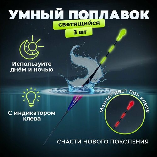 Умный поплавок светящийся для рыбалки / Горит в темноте 2 гр 21 см цвет Заката 3 шт