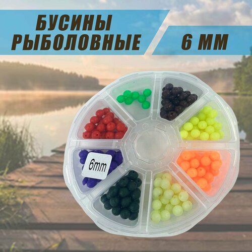 Бусины стопоры рыболовные для фидера / Набор бусинок в круглой коробке/ бусы для рыбалки 6 мм
