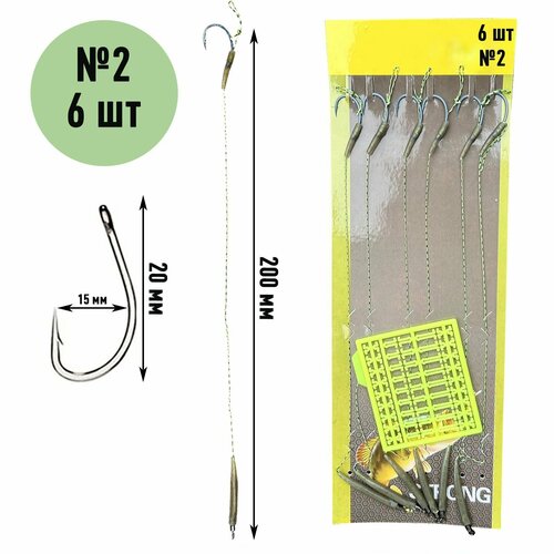 Набор готовых рыболовных карповых поводков Hair Rigs с крючками №2 с волосом