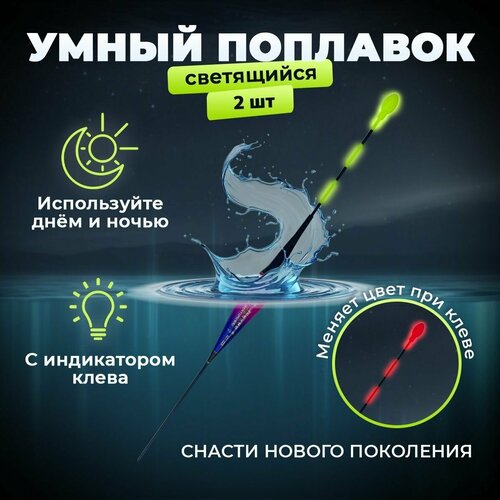 Умный поплавок светящийся для рыбалки / Горит в темноте 2 гр 21 см цвет Заката 2 шт