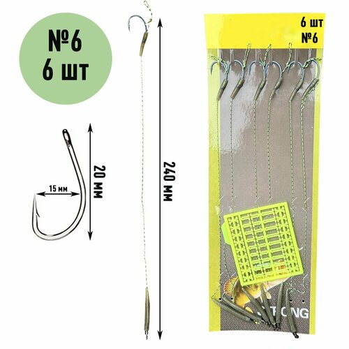 Набор готовых рыболовных карповых поводков Hair Rigs с крючками №6 с волосом