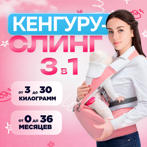 Хипсит - Nрансформер кенгуру 3в1- Эргорюкзак для новорождённых / Малышей / Розовый