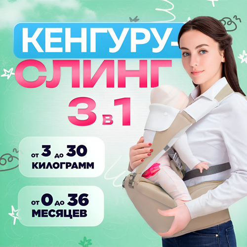 Хипсит - трансформер кенгуру 3в1 эргорюкзак для новорождённых, малышей / Оливковый