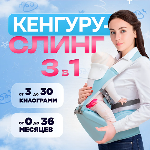 Хипсит - трансформер кенгуру 3в1 эргорюкзак для новорождённых, малышей / Голубой
