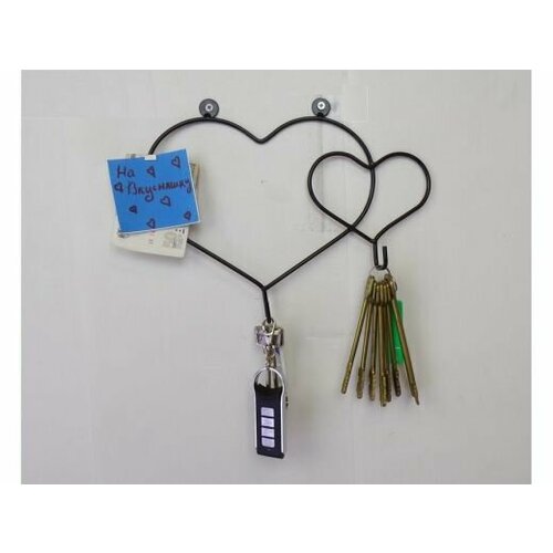 Ключница с магнитиком для записки, вешалка в прихожую, два сердца, чёрный