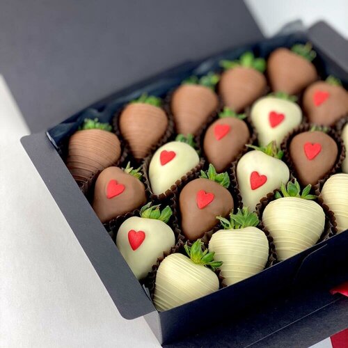 Набор клубники в в молочном и белом бельгийском шоколаде «Руссе» 20 ягод