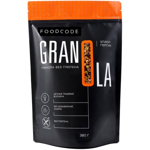 Гранола без глютена для здорового питания Злаки - персик FOODCODE 380г
