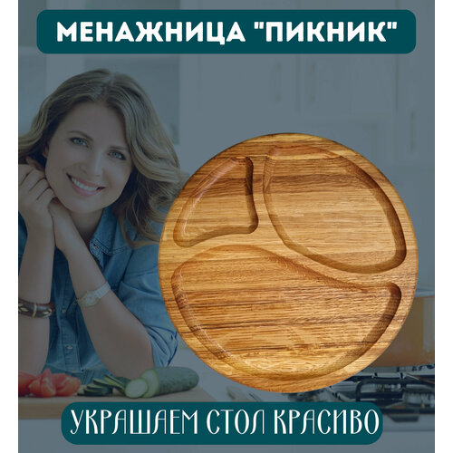 Деревянная менажница "Пикник" 30 см, дуб