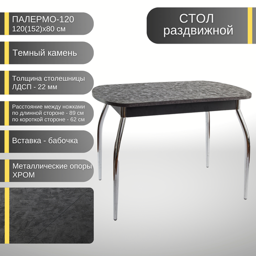 Стол кухонный со стеклом Forma Lux PALERMO 120 White-хром, раскладной ДхШ: 120 х 80 см, длина в разложенном виде 152 см