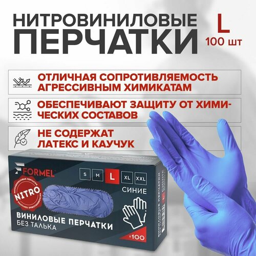 Перчатки нитровиниловые FORMEL, размер L, 50 пар/упак (100 ед)