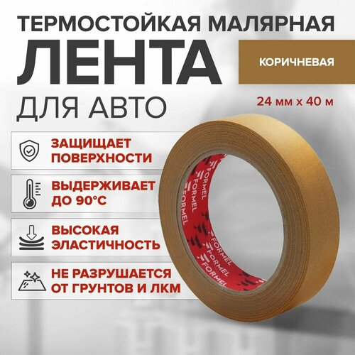 Малярный термостойкий бумажный скотч FORMEL, 24 мм х 40 м, / клейкая лента для малярных работ