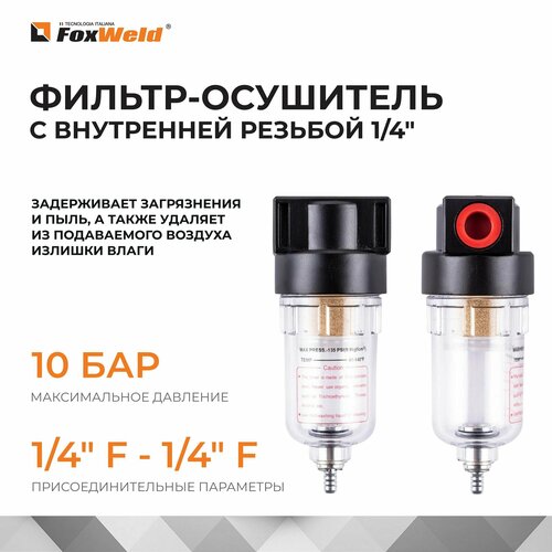 Фильтр- осушитель для компрессора, пневмоинструмента / Внутренняя резьба 1/4" / FoxWeld AERO