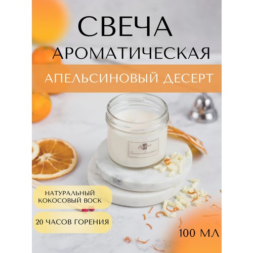 Ароматическая свеча из кокосового воска Апельсиновый десерт, свеча с деревянным фитилем FreAro 250 мл
