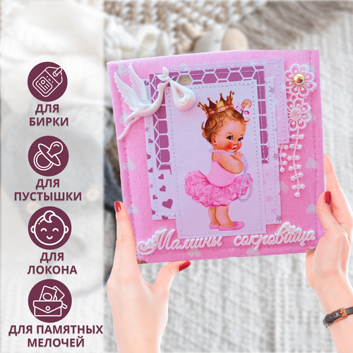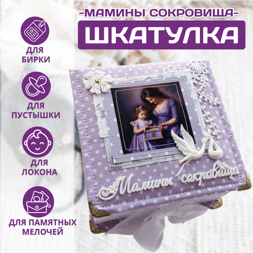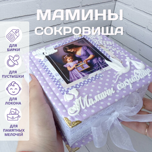 Шкатулка коробочка Мамины сокровища для девочки, для хранения пустышки, первого локона, бирки с роддома