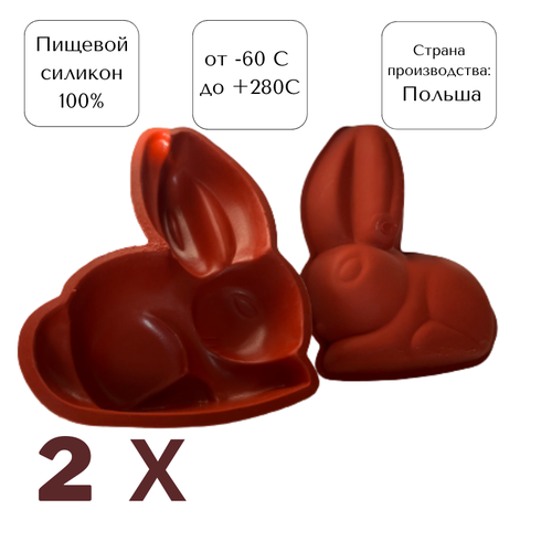 Форма силиконовая Заяц для выпечки и запекания кекса, бисквита, торта, десерта птичье молоко, шоколада 15х13 см - 2 шт