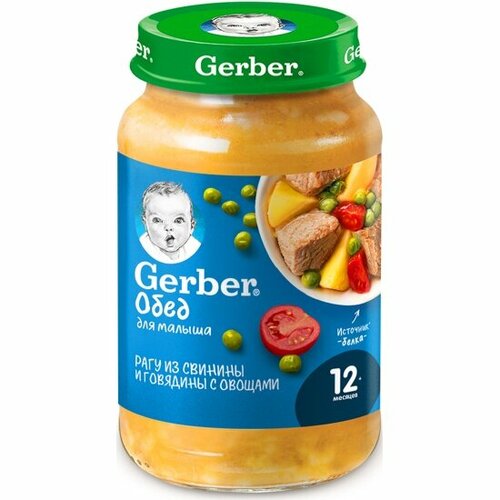 Пюре детское "Gerber" Рагу из свинины и говядины с овощами 190 г 12 шт