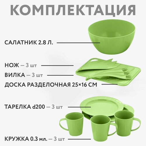 Набор для пикника Sugar&Spice Vanilla, на 3 персоны, 12 предметов, фисташка