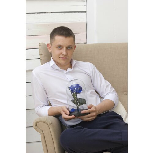 Букет из стабилизированных цветов/ стабилизированные цветы в стекле GIFT4YOU Glamur синяя, 22*14 см