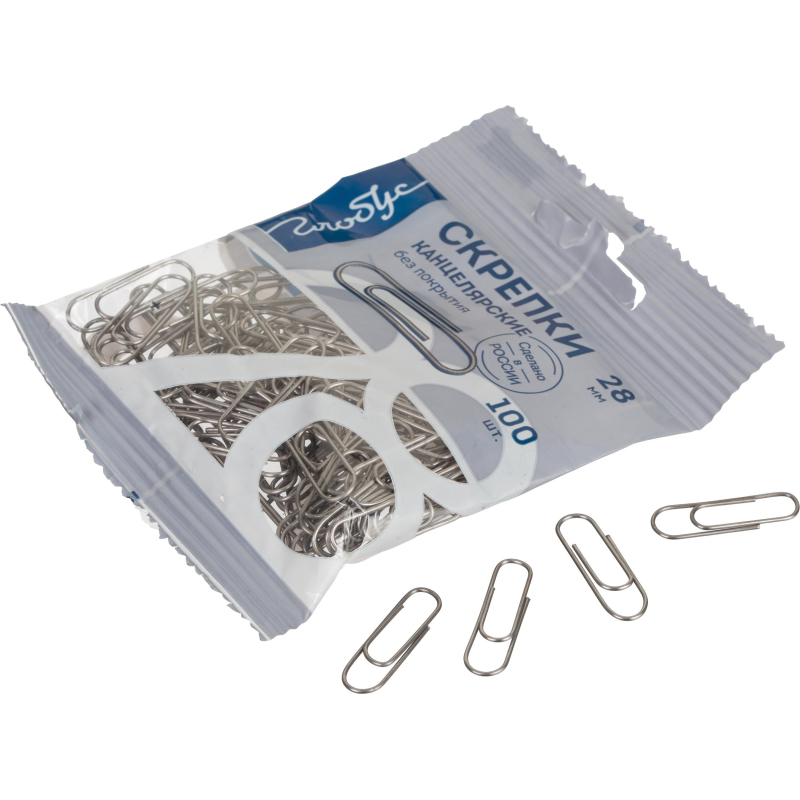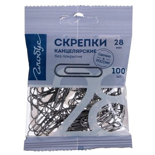 Скрепки Globus металлические без покрытия 28 мм 100 шт. в упаковке флоу-пак, (10шт.) 100058551330