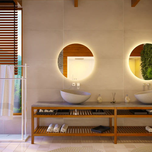 Зеркало круглое Ø 100 см с подсветкой 6500К / парящий эффект безрамное интерьерное серии LUNNA