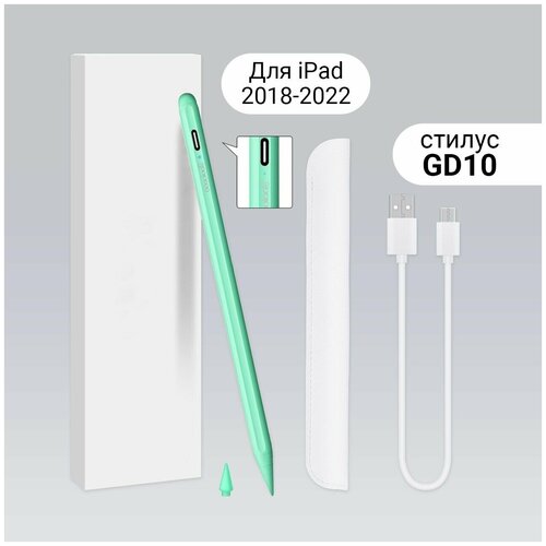 Стилус для iPad 2018-2022 с доп. наконечником Goojodoq GD10 Активный с изменением угла наклона и защитой от касания руки для рисования/заметок, зелёный