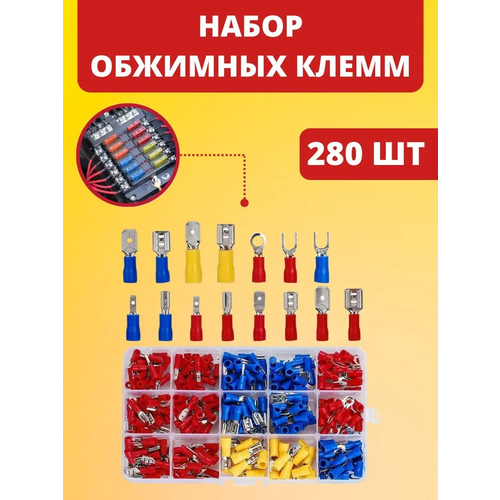 Клеммы обжимные. Набор клеммников 280 штук. Колодка клеммная, Кабельный наконечник 3 цвета.