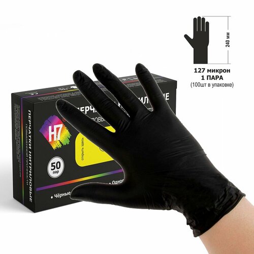 Перчатки нитриловые повышенной прочности без пудры черные 127 микрон 24 см, размер XL (2шт) H7