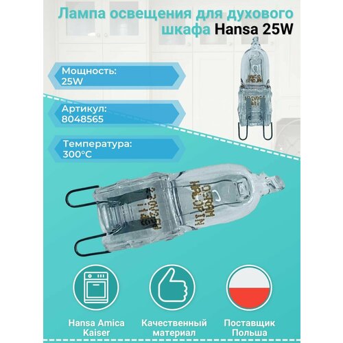 Лампа освещения для духового шкафа Hansa (Ханса) 25W 230-240V 300C - 8048565