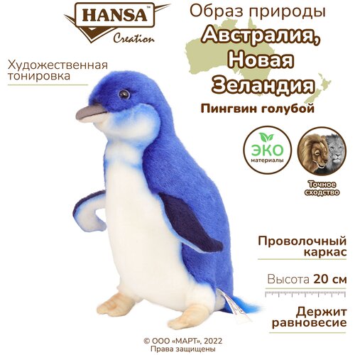 Реалистичная мягкая игрушка Hansa Creation, 6103 Пингвин малый голубой, 20 см