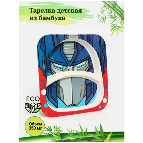 Тарелка детская из бамбука "Трансформеры" с двумя секциями / Посуда для кормления / для малышей