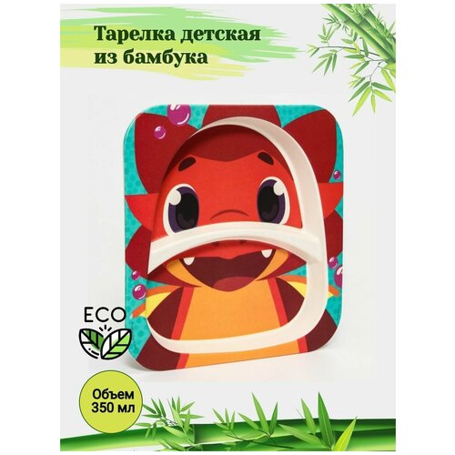 Тарелка детская из бамбука "Дракоша Тоша" с двумя секциями / Посуда для кормления / для малышей