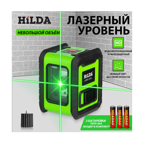 Лазерный уровень Hilda с 2 зелеными лучами и автоматическим выравниванием