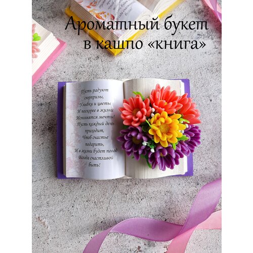 Букет из мыла в гипсовом кашпо "Книга". Подарок женщине. Незабудки