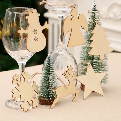 Набор деревянных украшений для новогодней елки, размер 6-7 см, 18 шт/уп