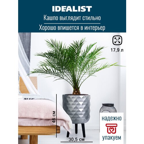 Напольное кашпо на ножках IDEALIST Lite Даймонд, серебристое, Д30,5 В46 см, 18.5 л.