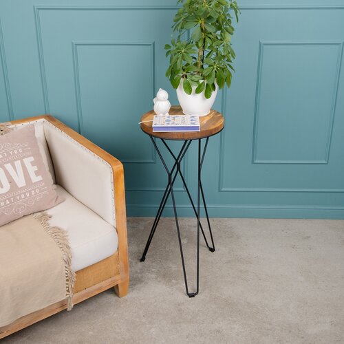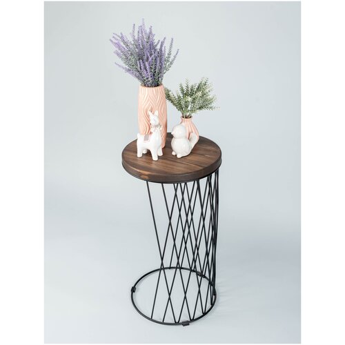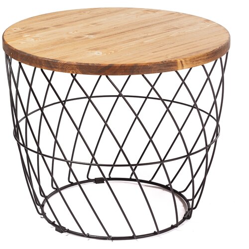 Стол журнальный ilwi MBL-W-TL-L-1-M/1/2 круглый металлический с деревянной столешницей в стиле лофт, подарок на день рождения