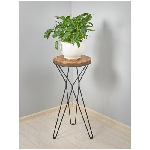 Подставка для цветов ilwi INT-W-PC-X-1-M/1/2 напольная металлическая из массива дерева в стиле лофт, подарок на день рождения