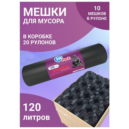Мешки для мусора InPack PREMIUM 120 л, 50 мкм, 1 коробка х 20 рулонов, 200 шт