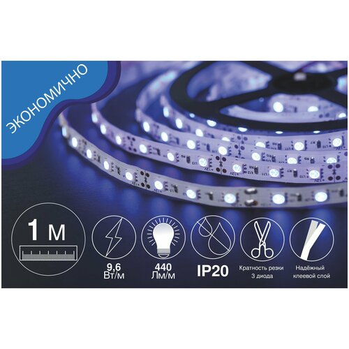 Светодиодная лента. Комплект LED подсветки. 1 метр. 12В, 4.8 Вт/м, SMD 3528, 60 диодов/м, IP20, 220 Лм/м, холодный белый