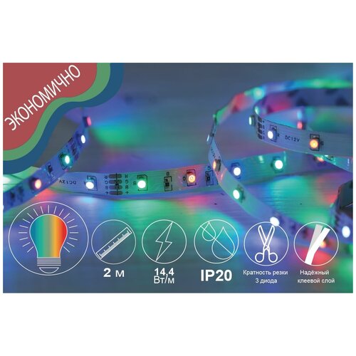Светодиодная лента. Комплект LED подсветки. 2 метра. 12В, 14.4 Вт/м, SMD 5050, 60 диодов/м, 12 Лм/чип, IP20, RGB