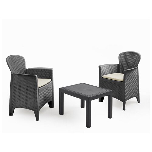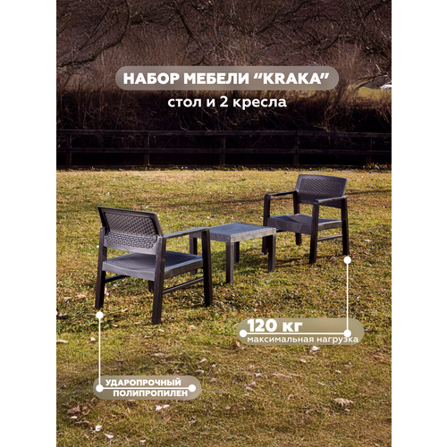 Набор садовой мебели пластиковый Ipae Progarden Kraka антрацит стол и 2 кресла (6430)